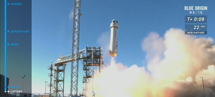 Ένα βήμα πιο κοντά στον στόχο των εμπορικών διαστημικών πτήσεων έκανε η αεροδιαστημική εταιρεία Blue Origin του Tζεφ Μπέζος με την δέκατη επιτυχημένη εκτόξευση του επαναχρησιμοποιούμενου πυραύλου τους, New Shepard, από το δυτικό Τέξας.