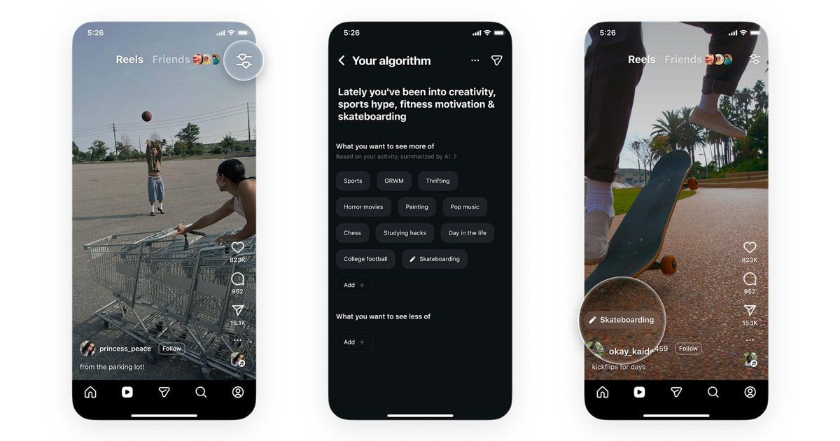 Η διαδικασία είναι απλή αλλά ουσιαστική: Ενώ παρακολουθείτε Reels, μπορείτε πλέον να πατήσετε σε ένα νέο εικονίδιο (δύο γραμμές με καρδιές) που εμφανίζεται στην οθόνη. Αυτό θα σας οδηγήσει σε έναν πίνακα ελέγχου όπου το AI του Instagram θα σας παρουσιάζει μια σύνοψη των ενδιαφερόντων σας, όπως «fitness motivation», «vintage μόδα» ή «tech news».